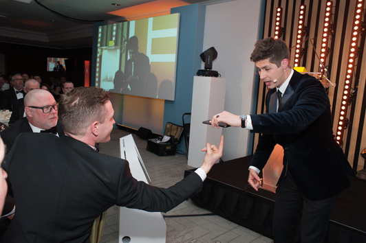 Marcello Del Brenna, CEO of Prysmian Cables & Systems, participates in Ben Hanlin's Magic trick.
