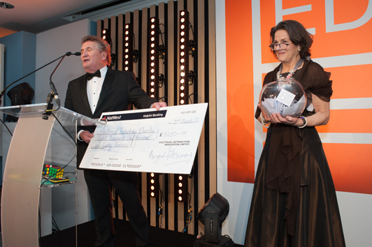 Stewart Gregory, President of the Electrical Industries Charity, announces that £8180 has been raised.